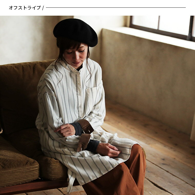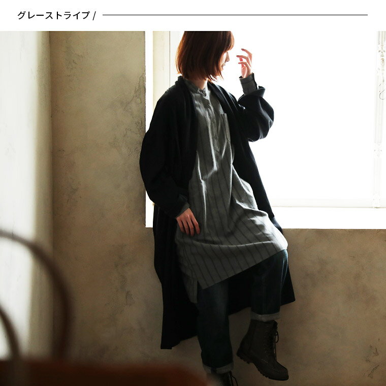 掘り出しバザールイベント商品のためお客様都合での返品・交換不可フレンドリーなきちんと感フレンドリーシャツワンピースワンピース S/M/L/LL/3L/4Lサイズ レディース/長袖/ロング/チュニック/ストライプスタンドカラー/コーデュロイ